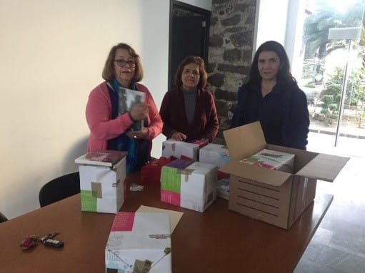 Pie de foto. Escritora Gloria Tirado Villegas, escritora Emma García Palacios, periodista y escritora Olivia López Pescador recibiendo de la editorial el libro No. 13 de la AMPEP. Imagen de Archivo.