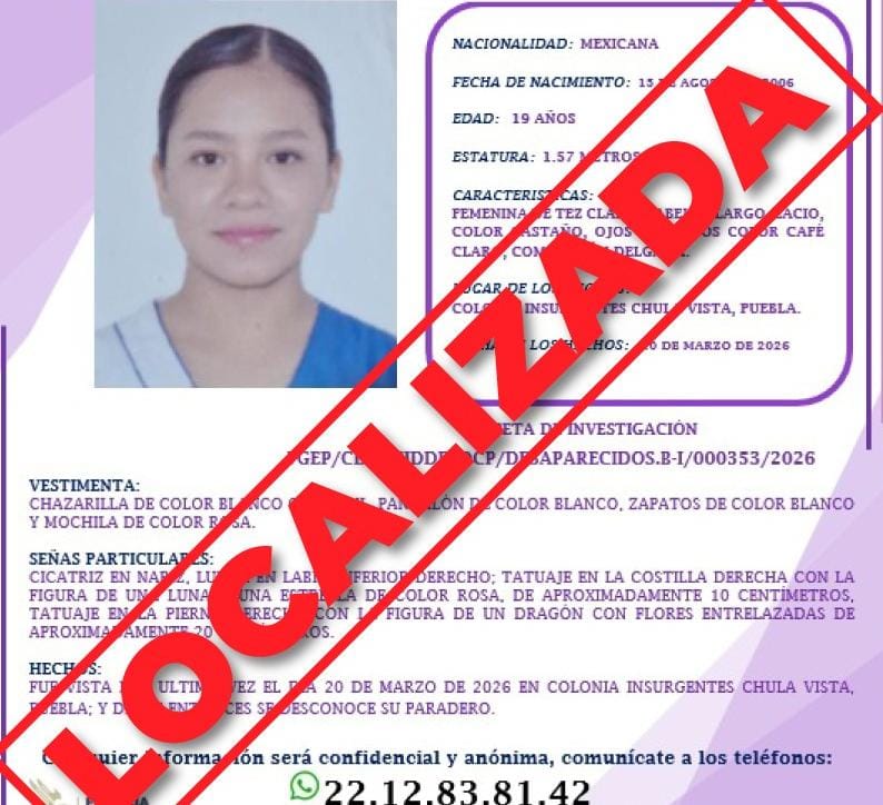 ​Localizan sana y salva a Ana Esther Galaviz, joven reportada como desaparecida en Puebla